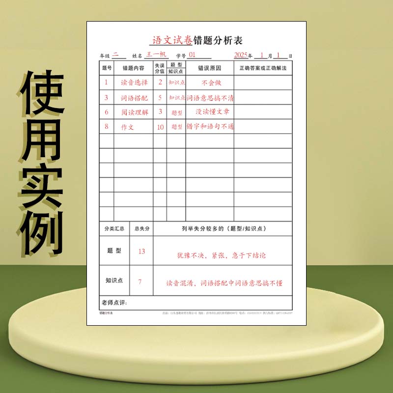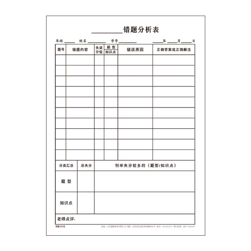 错题分析表适合小学生初中生高中生语文数学英语物理化学政史地等