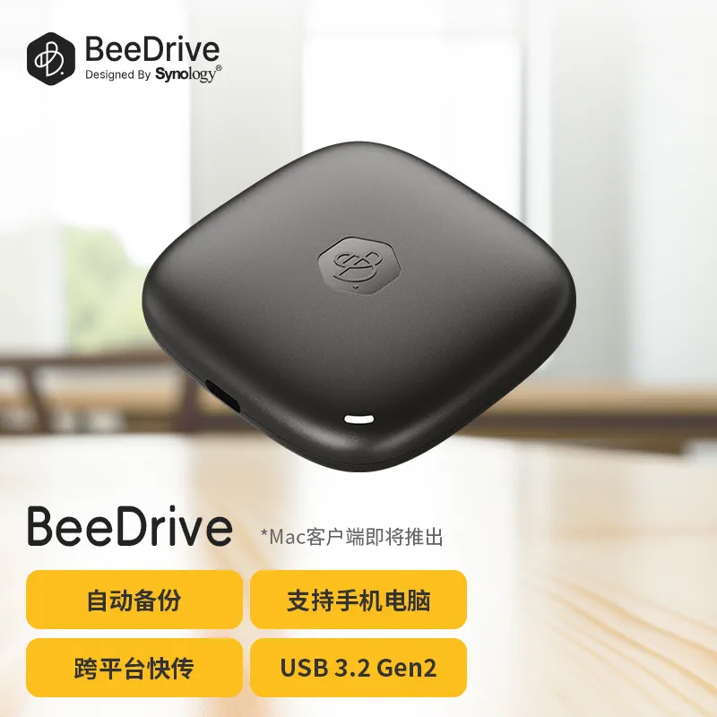 群晖/Synology BeeDrive 1TB/2TB 个人备份存储助手无线高速传输 迷你防摔 USB3.2Gen2 Type-C 三年质保