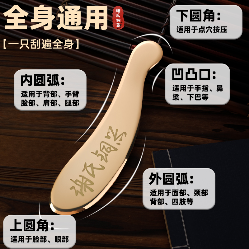 纯黄铜谢氏砭法虎符刮痧板家用肩颈背部黄铜砭全身通用按摩刮痧刀