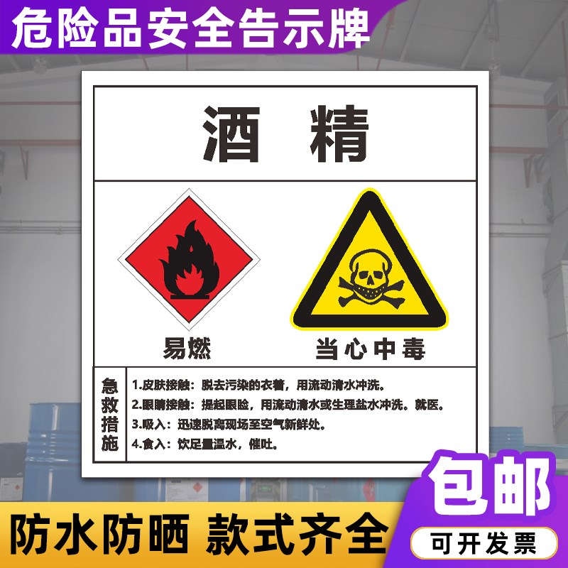 现货速发危险品安全周知卡告示牌丙酮酒精香蕉水异丙醇急救措施标