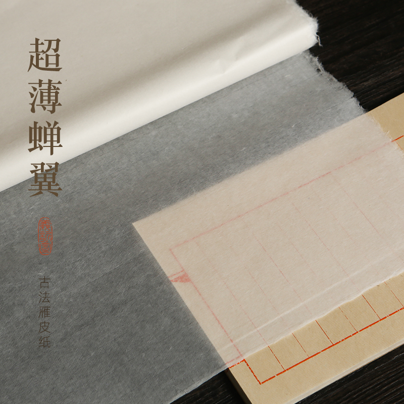 义记宣『手工雁皮蝉翼』大师级25克超薄宣纸四六尺半生熟小楷书法作品拓印写经抄经信笺手札半透明写意临摹纸