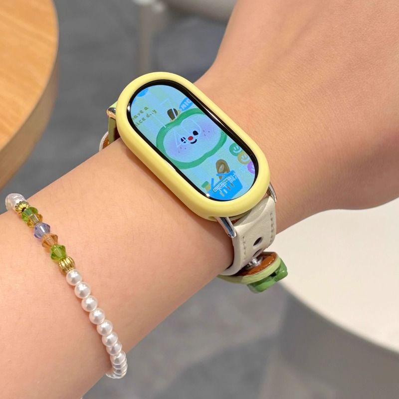 青苹果适用小米手环10表带小米9新款皮质8nfc高级感夏天7智能运动6透气创意保护套壳XL腕带配件红色硅胶粉色