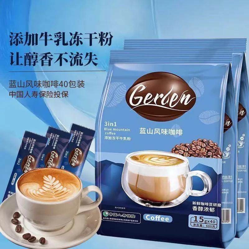 40条蓝山咖啡风味特浓速溶云南小粒咖啡粉三合一拿铁学生提神条装