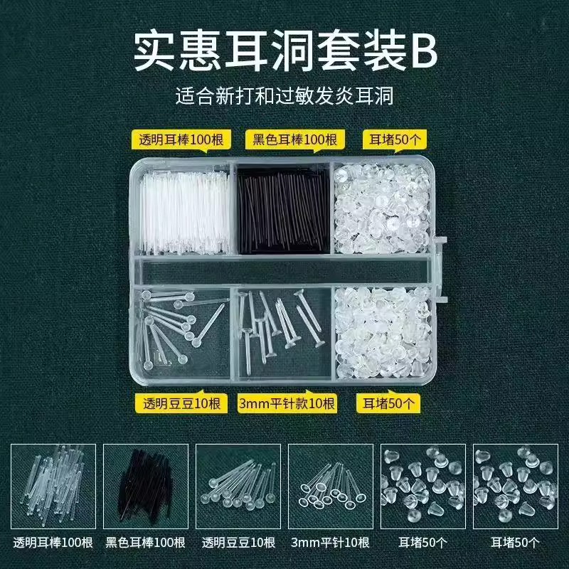 适合养耳洞耳钉套装透明隐形耳棒女日韩简约学生防堵塑料耳针耳棍