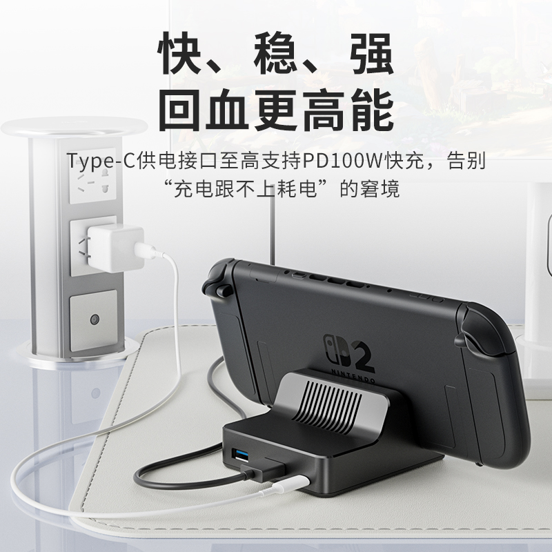 AOLION澳加狮Switch2便携底座适用任天堂ns2高清投屏线散热底座拓展电视TV模式显示器转换器连接oled配件