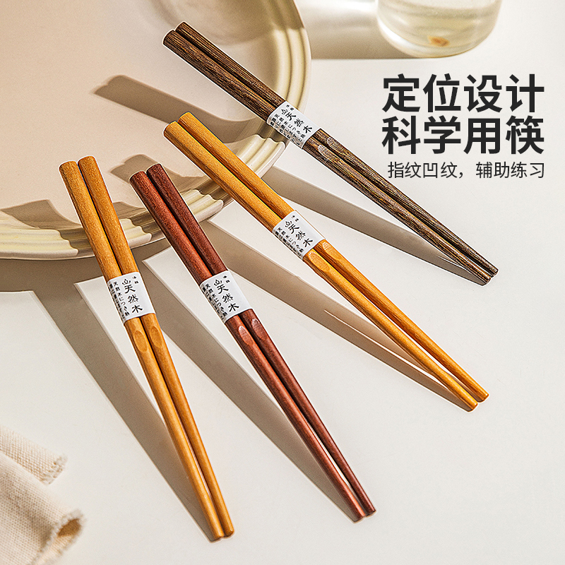 利瓷鸡翅木筷子家用防滑防霉木质快子10双20双家庭套装木箸