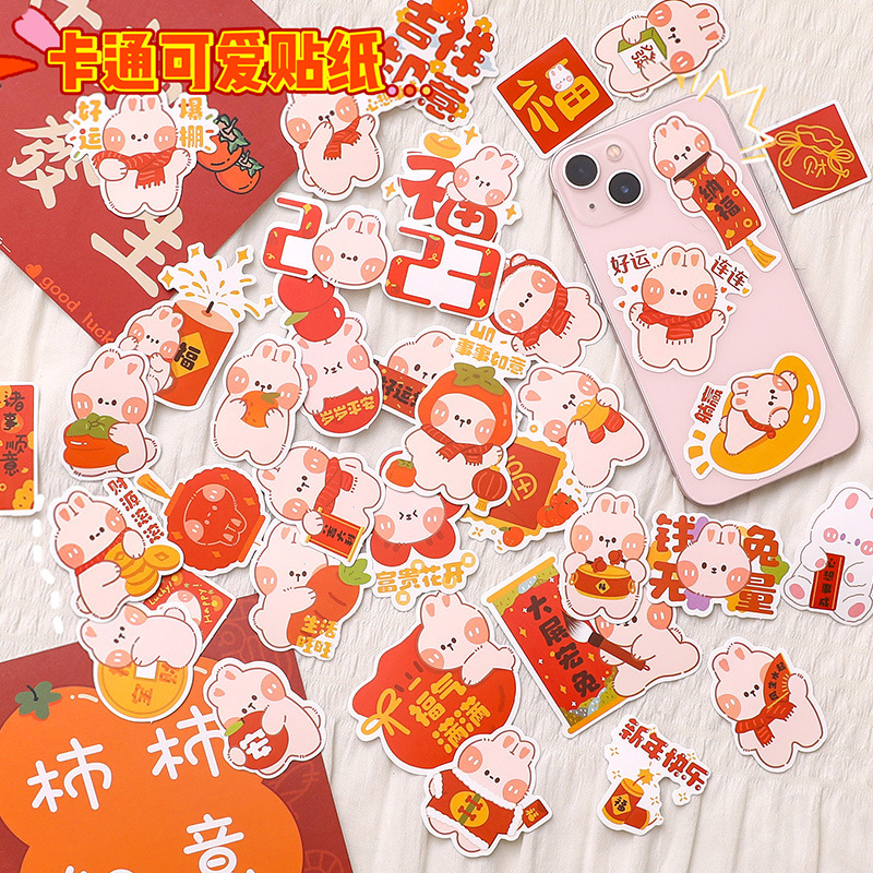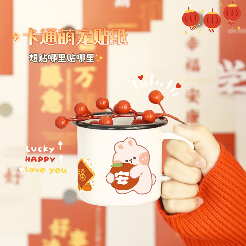 儿童装饰可爱diy贴纸新年兔年萌宠贴画励志文字女孩儿学生标记贴