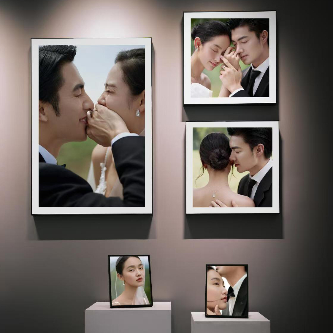 结婚婚纱照铝合金相框挂墙洗照片免打孔定制大尺寸相片冲印高级感