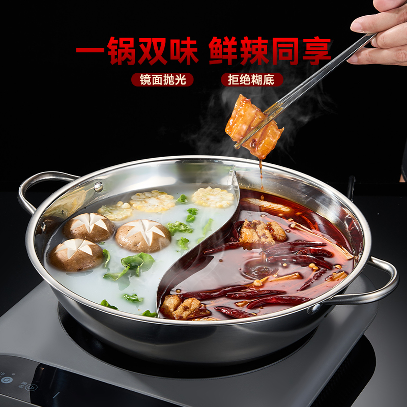 鸳鸯锅火锅家用不锈钢加厚火锅盆电磁炉专用加厚清汤锅商用干锅仔