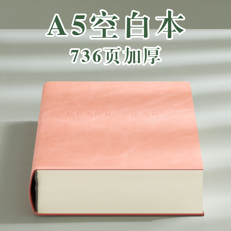 A5超厚736页空l白笔记本子高颜值软皮面大学生简约A加厚白纸本横