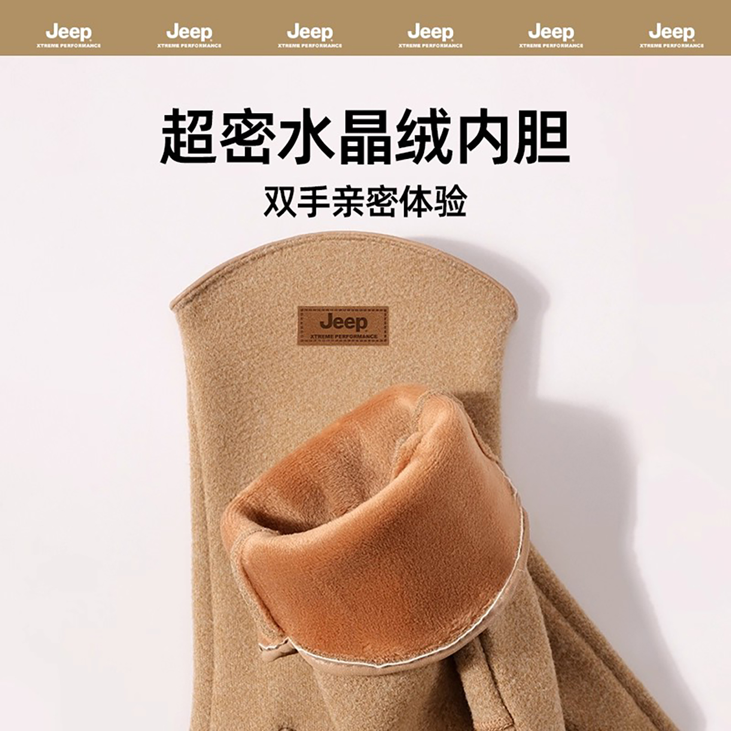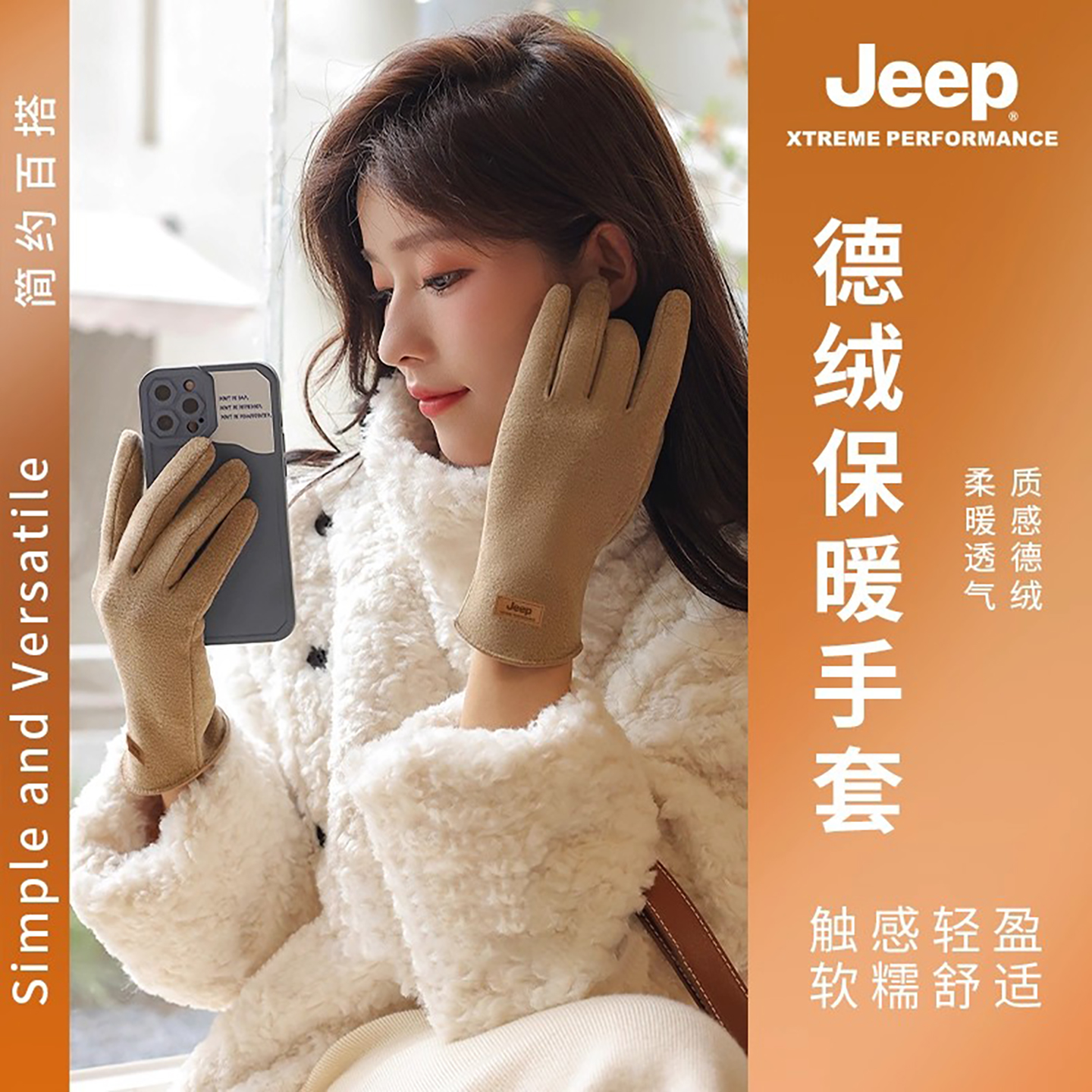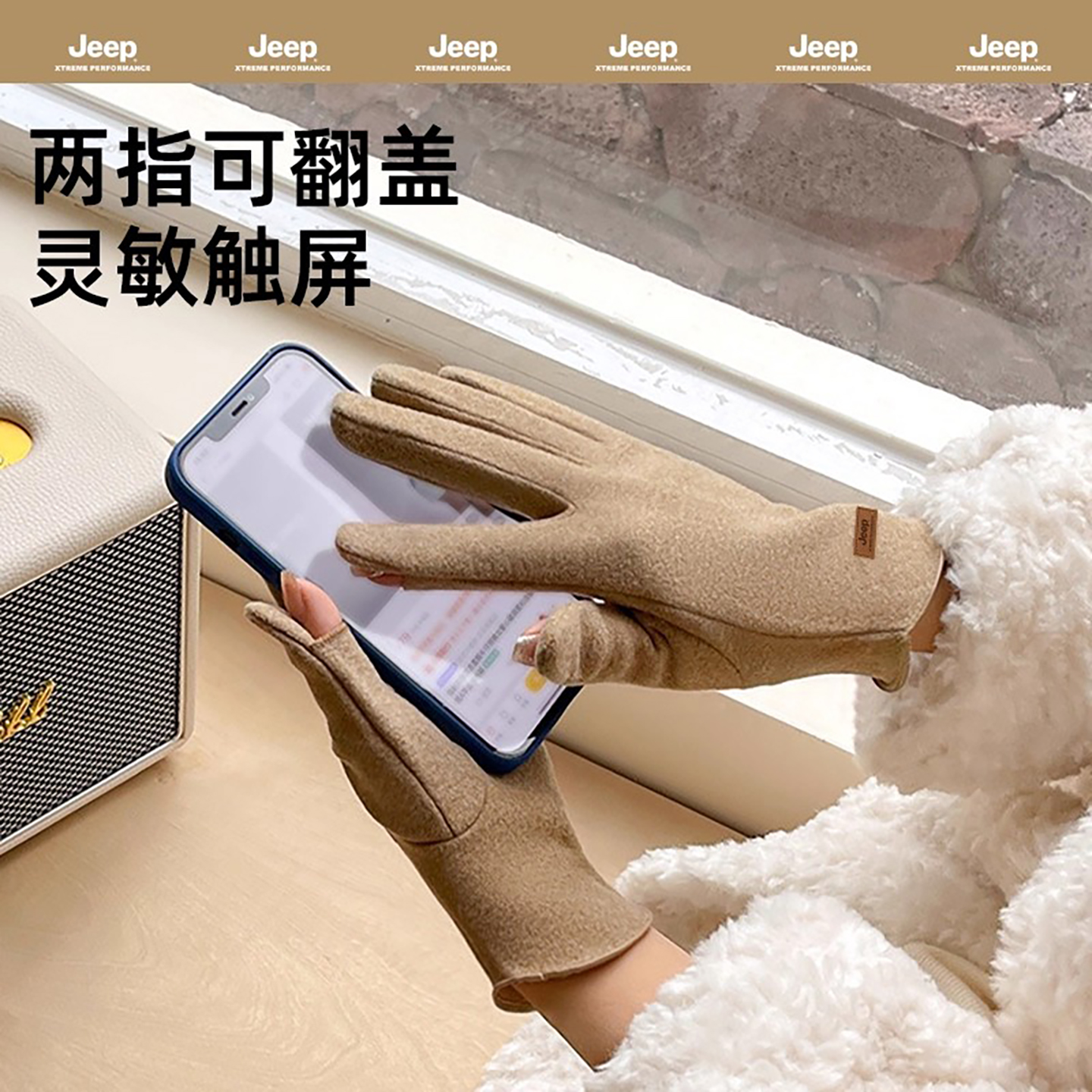 jeep吉普女冬季手套女士德绒发热冬保暖加绒防寒骑行防风触屏手套