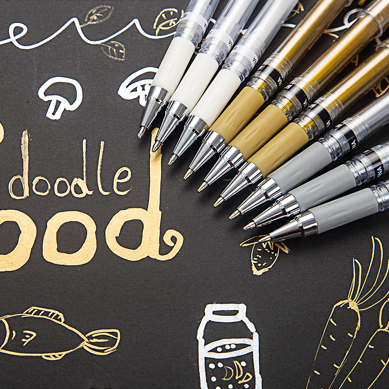 金万年高光白笔金色银色加粗白色中性笔1.0mm学生用闪光彩色手绘专用美术生素描绘画签名签字笔抄经笔烫金笔