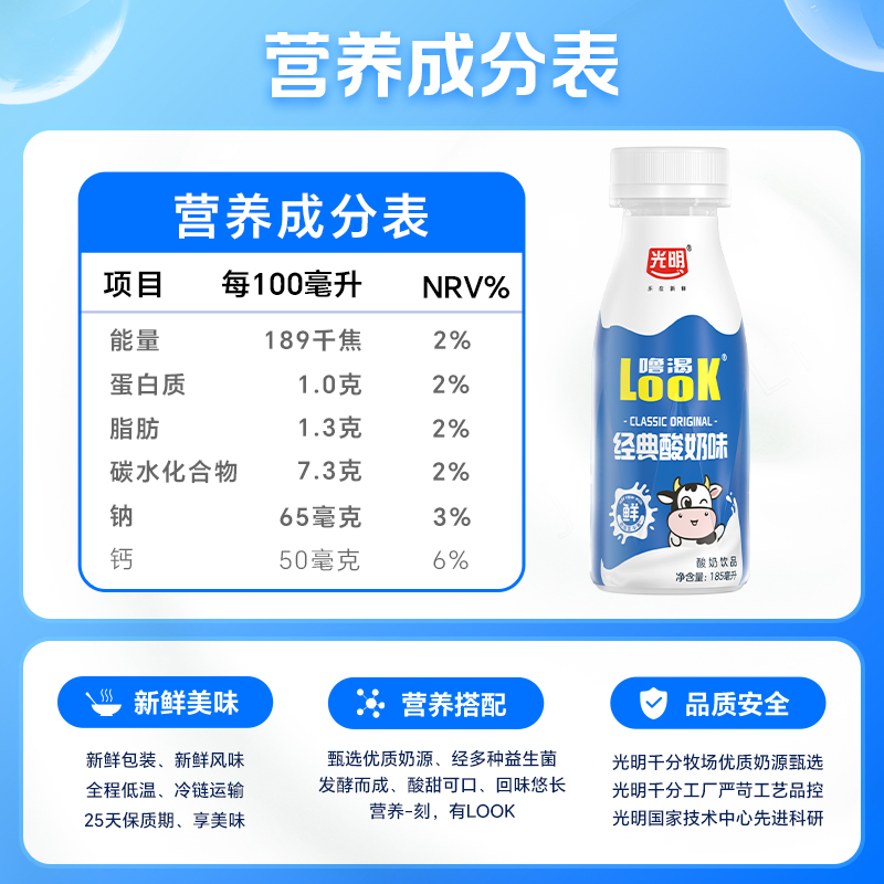 光明噜渴LOOK低温原味185ml经典酸奶味生牛乳益生菌酸牛奶饮品
