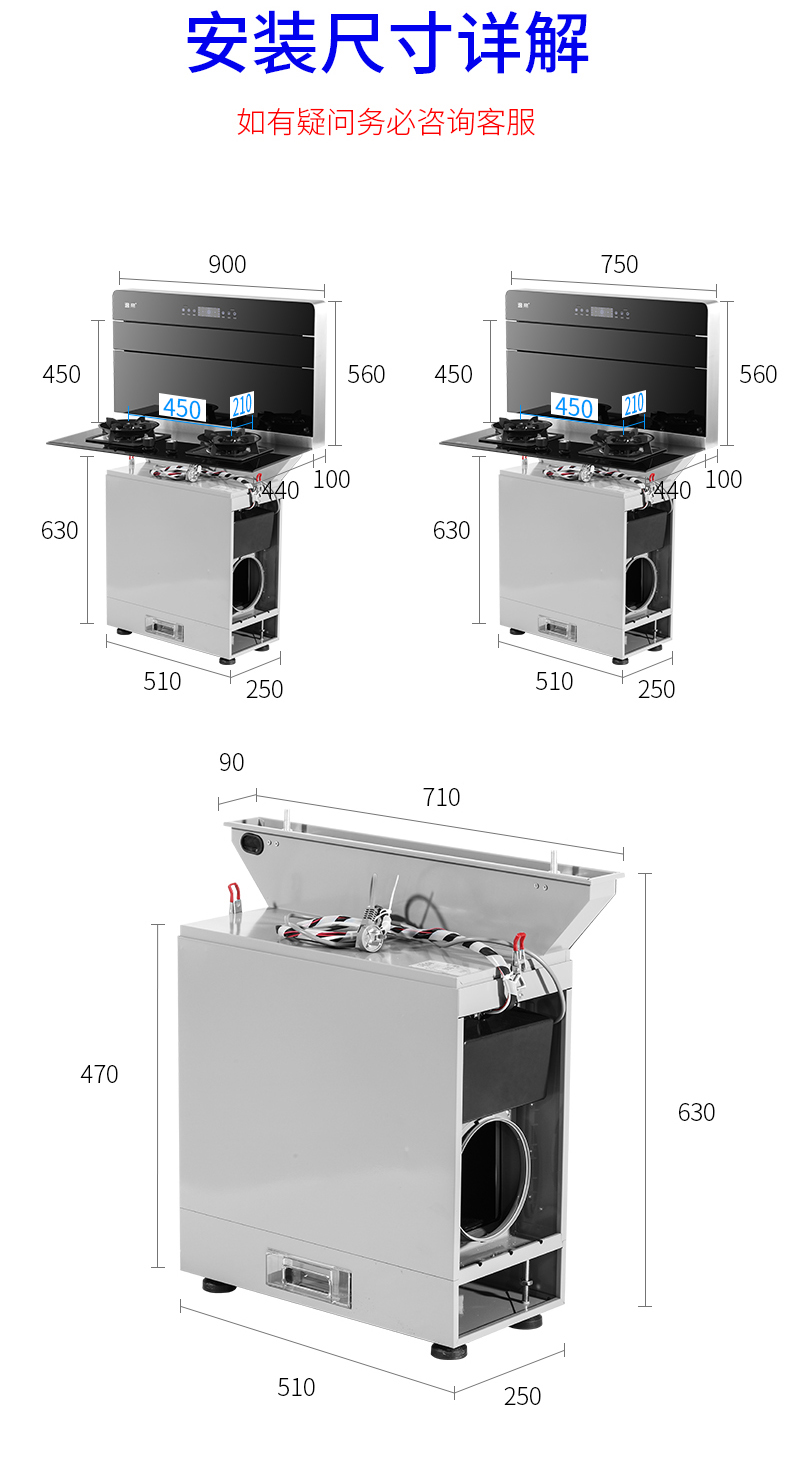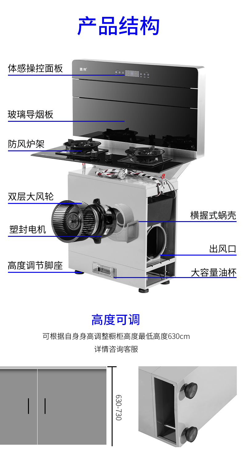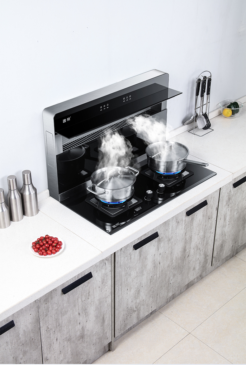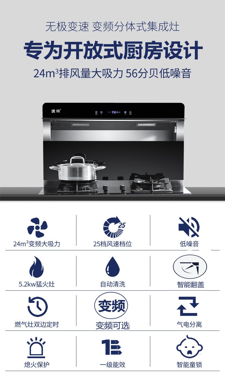 逸帝分体式下吸式抽油烟机燃气灶套餐下排侧吸嵌入体感集成灶翻盖