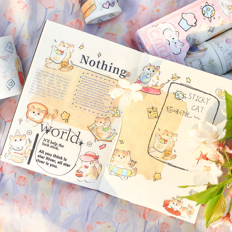 猫咪印记和纸胶带套盒diy手账日记贴画跨境复古卡通动物猫咪贴纸