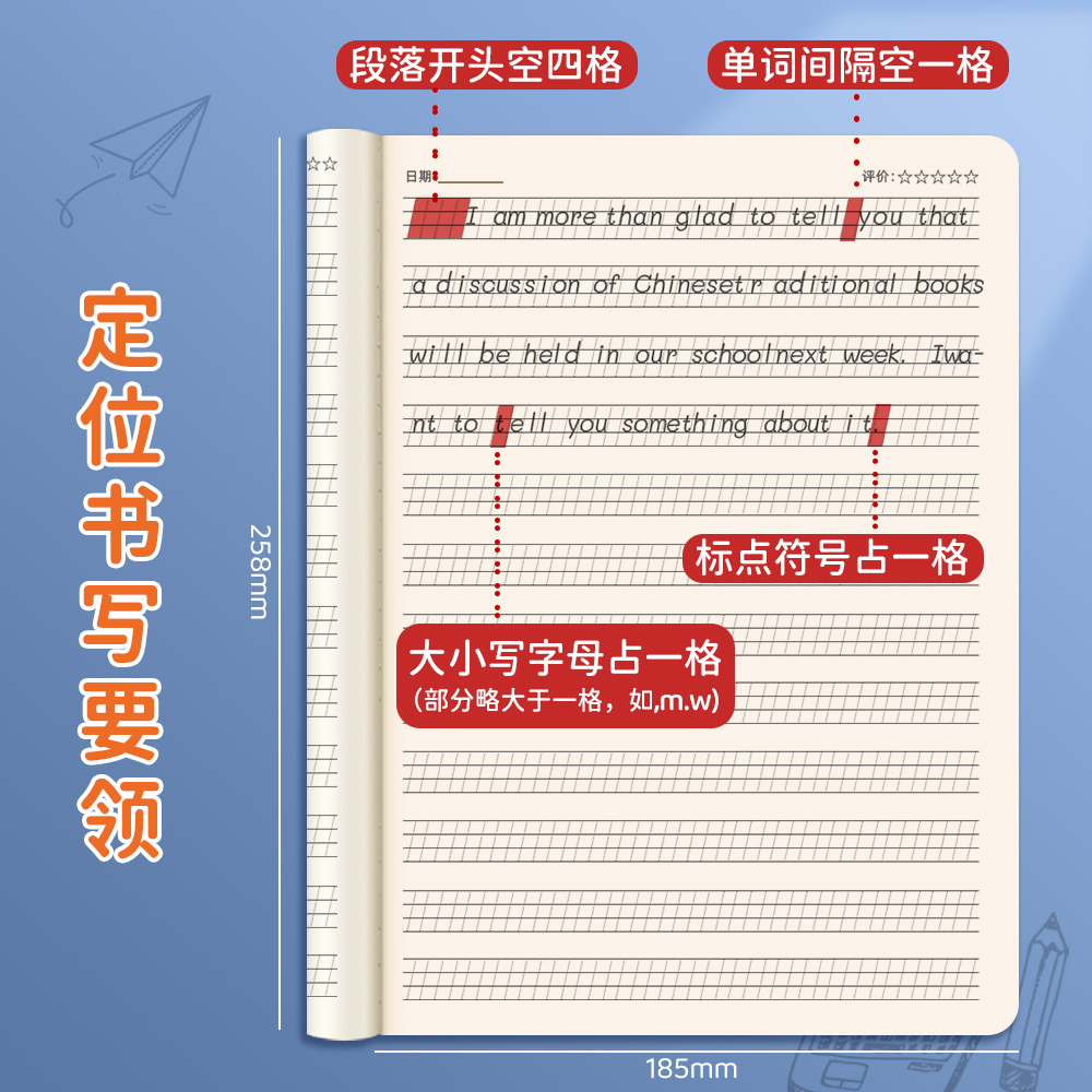 定位英语本定格书写本英文规范训练本子小学生初中生高中生练字专用作文练习纸单词听写本大本作业本加厚
