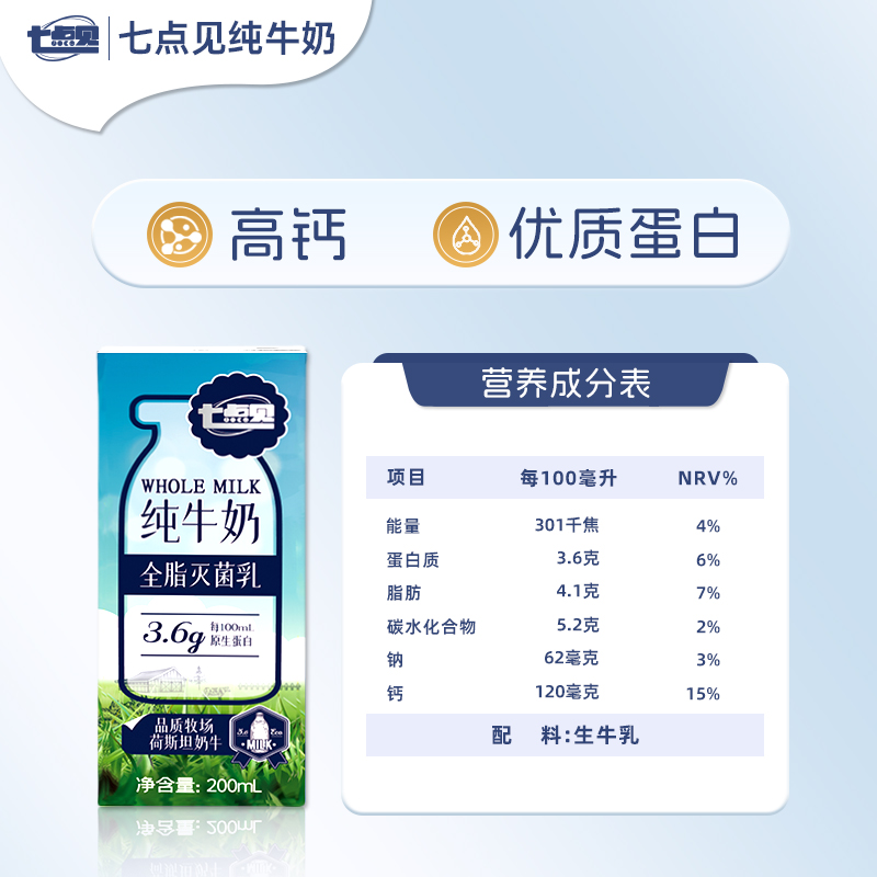 8月七点见3.6g蛋白全脂纯牛奶营养生牛乳营养早餐牛奶高钙奶牛