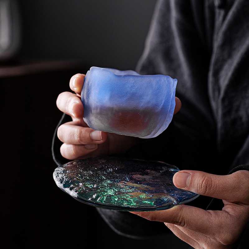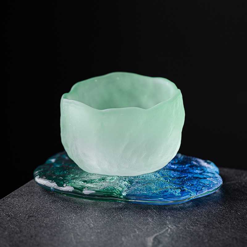 日式冰川蓝绿国潮风小茶杯清酒杯琉璃杯女主人茶杯品茗杯手冰冻烧