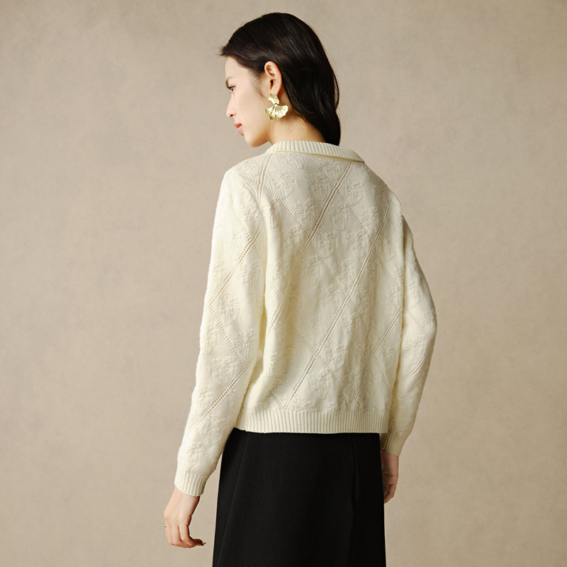 晚白2025年秋冬新款温柔时尚休闲含羊毛镂空针织衫上衣女开衫外套