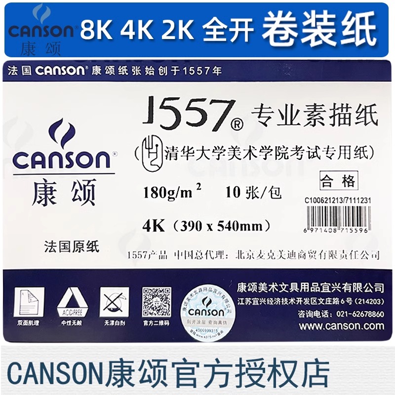 康颂素描纸8k4k全开画纸1557专业美术生速写绘画纸彩铅纸中粗纹
