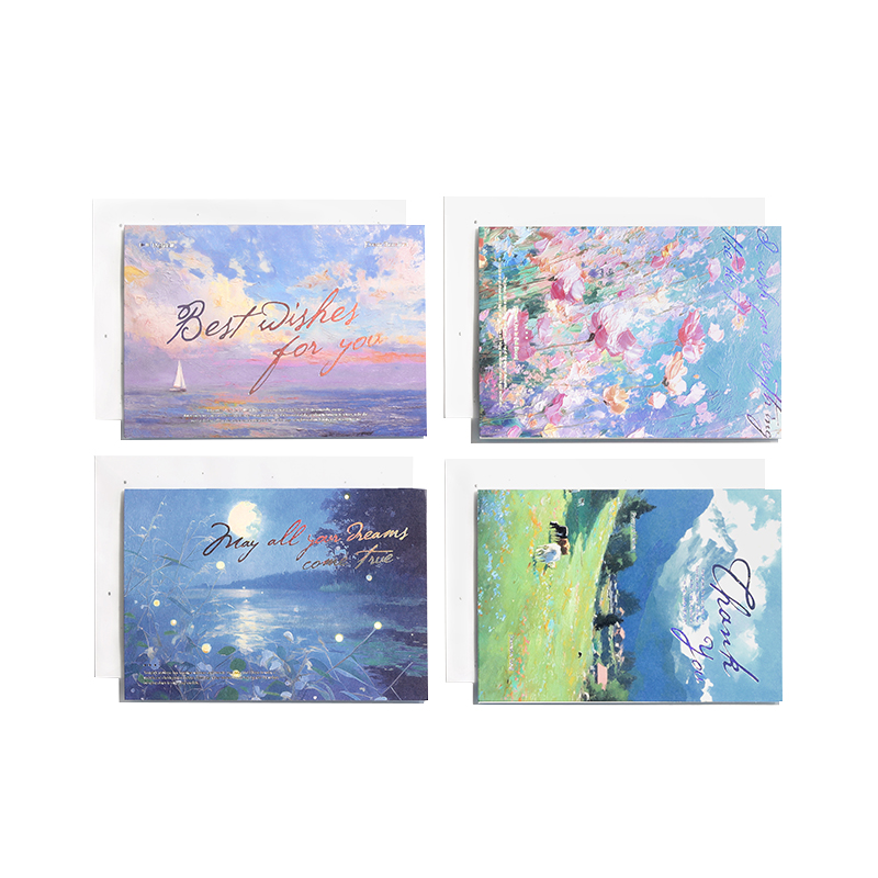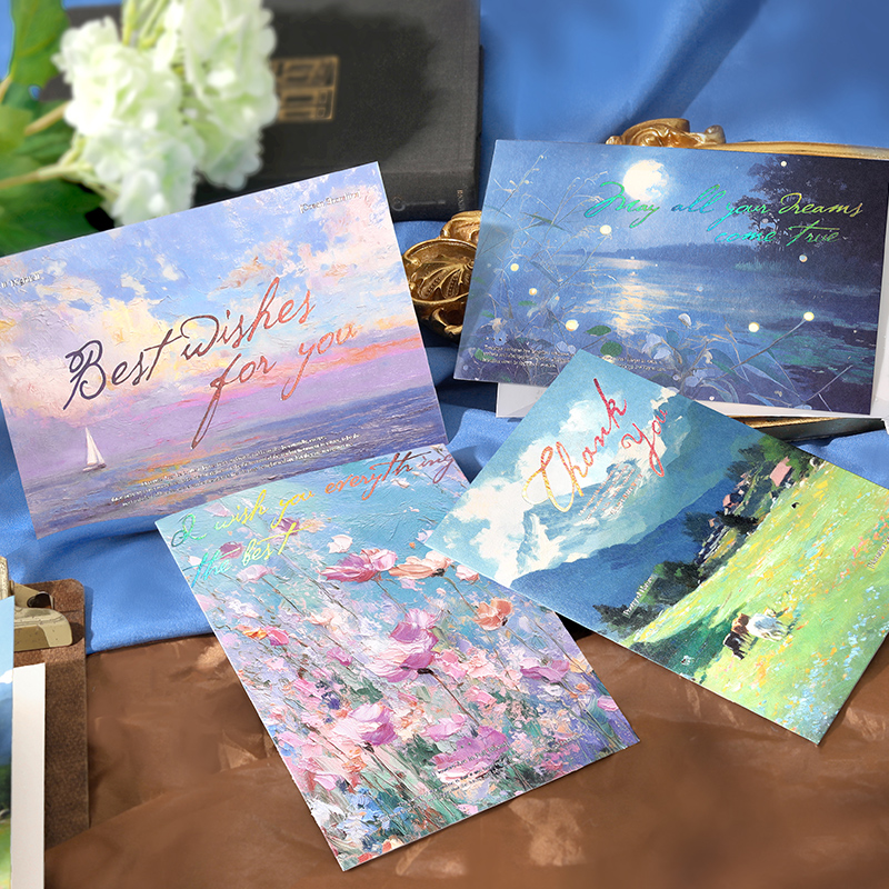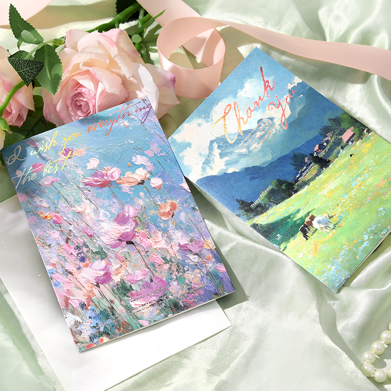 创意烫银对折贺卡自然之诗系列带信封硫酸纸复古风油画高颜值节日祝福感谢卡折叠卡片可定制教师节圣诞卡新年
