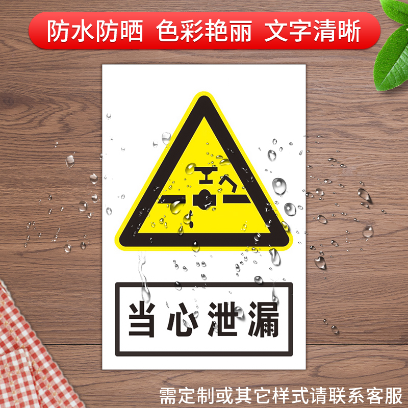 当心泄漏安全标识牌电池泄露气压危险化学品废物存放消防标示小心注意警示牌标识标志提示牌警告禁止贴纸定制