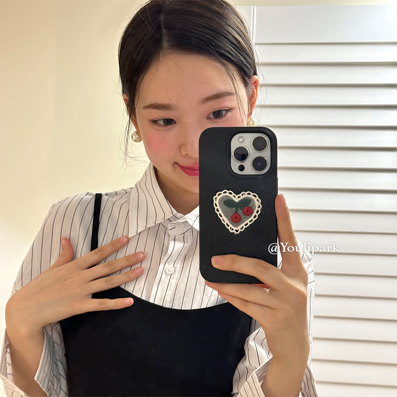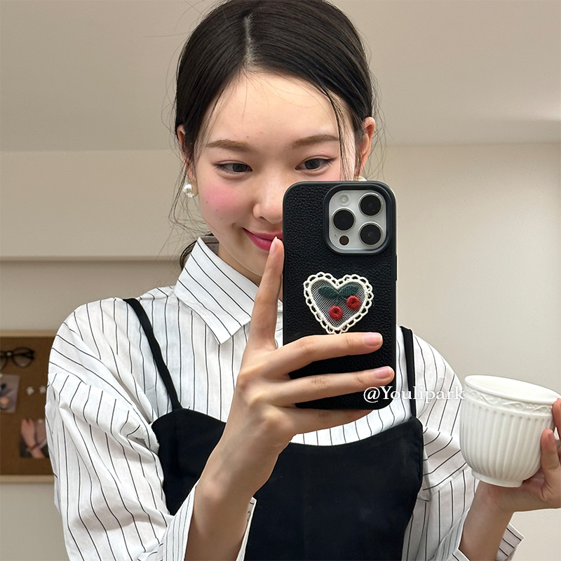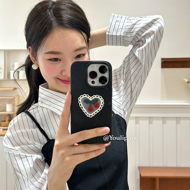 由里公园ins小众少女气质爱心蕾丝樱桃15适用17pro苹果17ProMax手机壳iPhone16全包17新款14Promax保护套13软