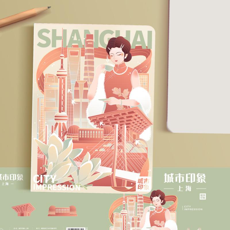 城市印象上海旅游打卡盖章旅行收集印章空白内页裸脊线装手帐本子
