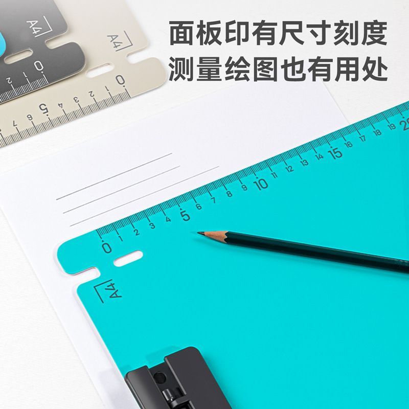 得力64857悬停单板夹A4办公文件资料夹笔夹带尺寸刻度因为遇见你