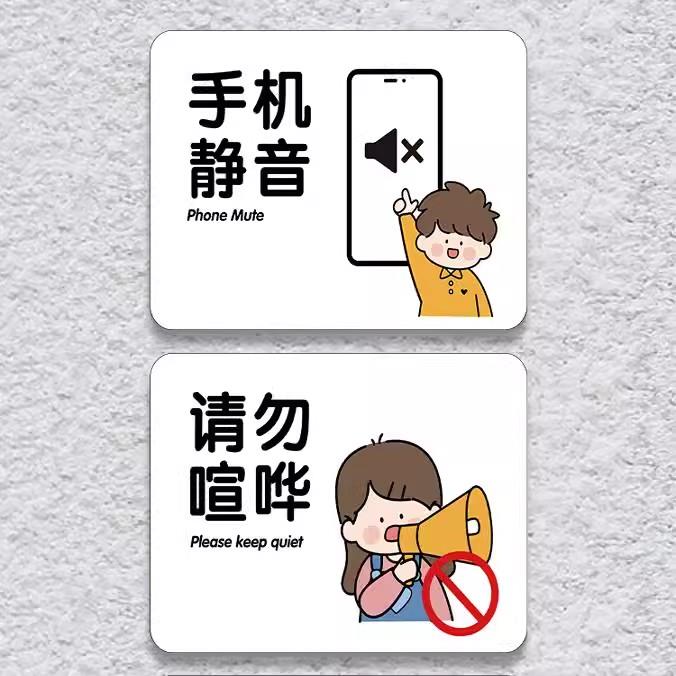 夜深人静请勿大声喧哗提示牌小声说话标识禁止喧哗贴纸请保持安静提示牌举止文明轻声细语标识牌控制音量墙贴
