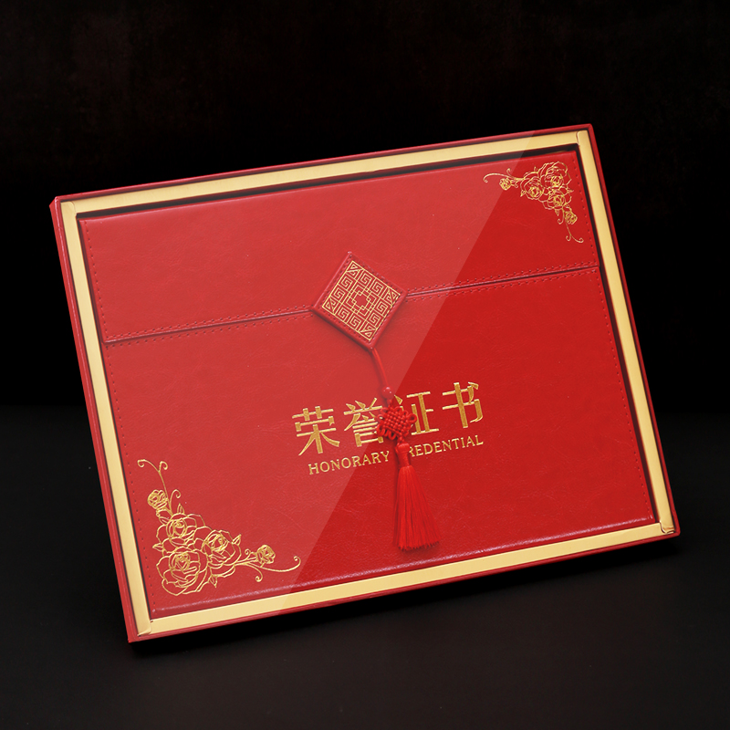 三折页中国结仿皮荣誉证书a4高档聘书捐赠证书横版结业证书外壳奖状内芯打印封面定制logo颁奖获奖证书封套