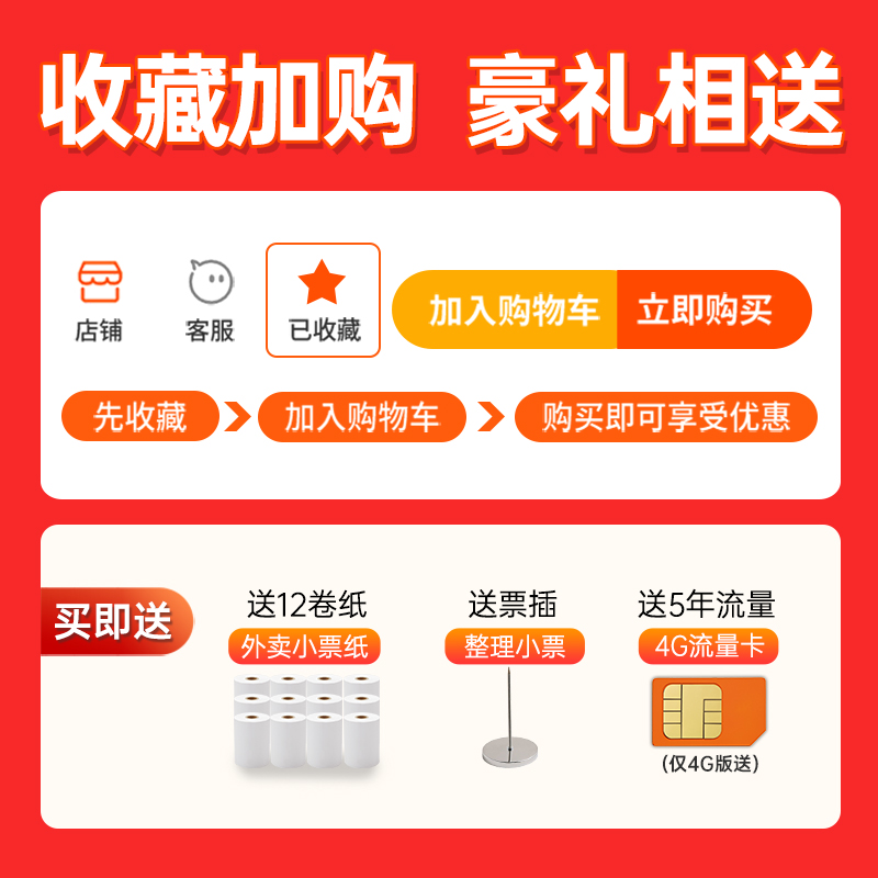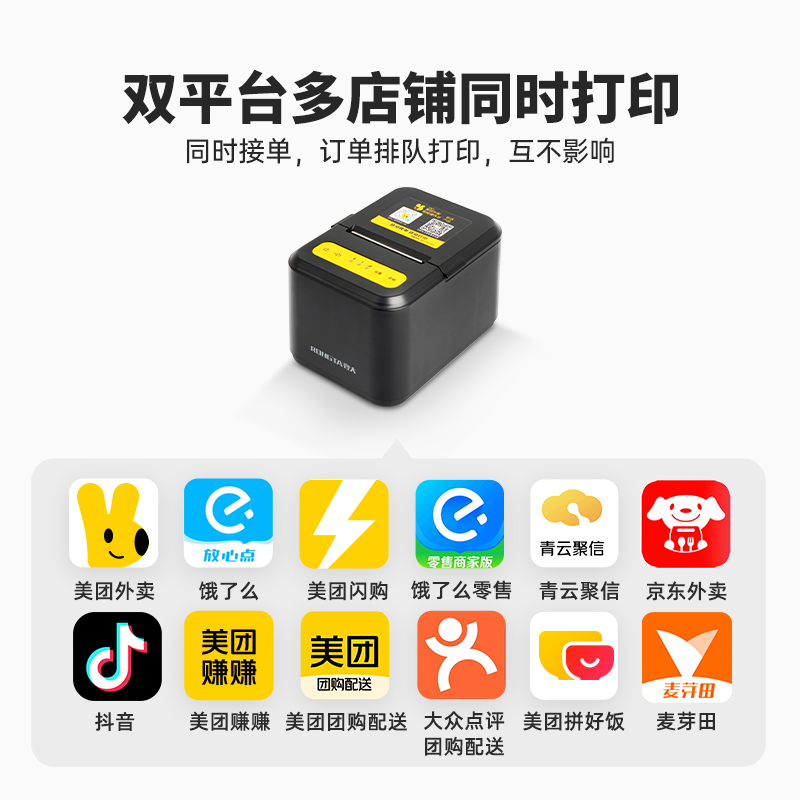 美团外卖打印机自动接单机蓝牙WIFI扫码点餐机餐饮收银58热敏小票机饿了么外卖云订单4G真人语音出餐宝打单机