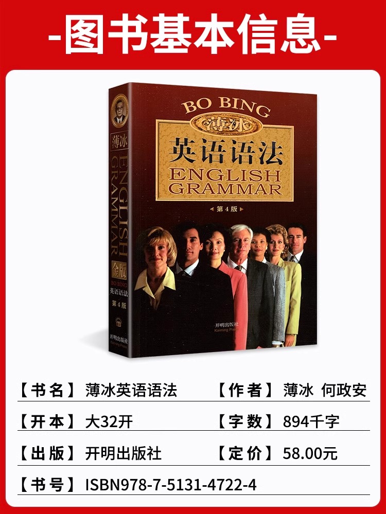 薄冰英语语法 正版第四版 初中高中大学英语四六级考试考研零基础入门自学实用英语大全教材练习 基础教材全解在用书籍语法大全书