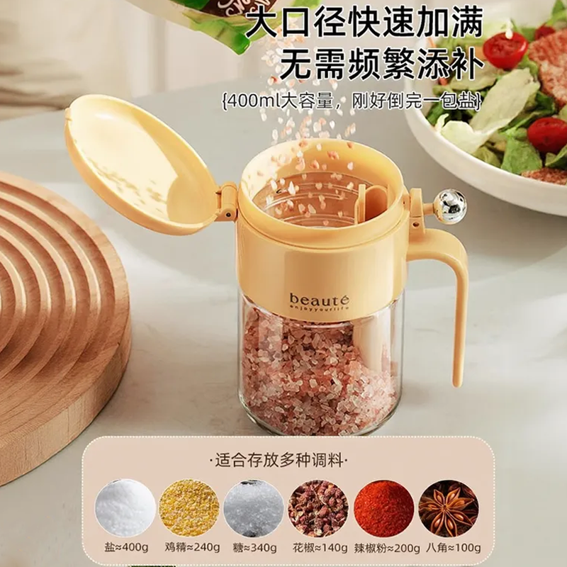厨房调味盒密封防潮带勺子大容量圆球调料盐罐味精佐料定量调料瓶