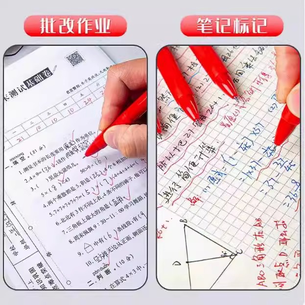 三年二班×点石红笔速干学生用红色中性笔老师专用粗头批改作业高颜值柔绘笔直液式刷题笔圆珠笔勃艮第红水笔