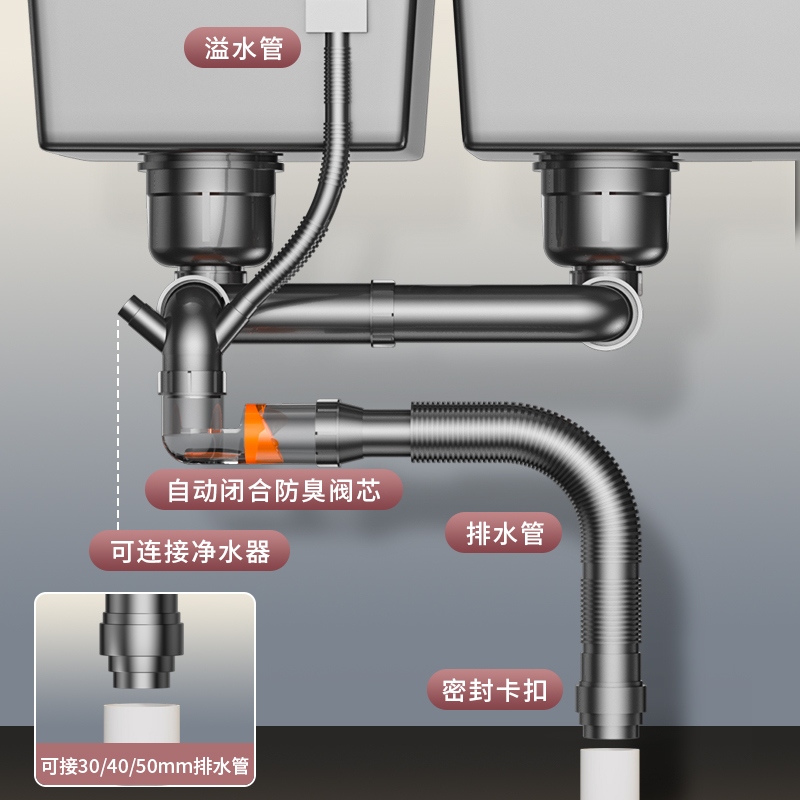 厨房后置下水管单槽双盆升级套装洗菜池排水管超水槽防臭下水器