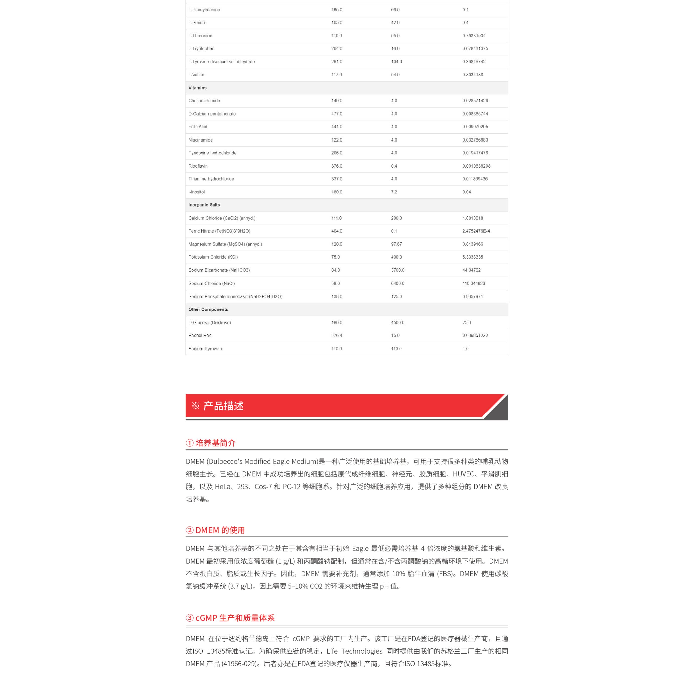 11995-065 DMEM高糖培养基(含L-谷氨酰胺, 丙酮酸钠,不含HEPES
