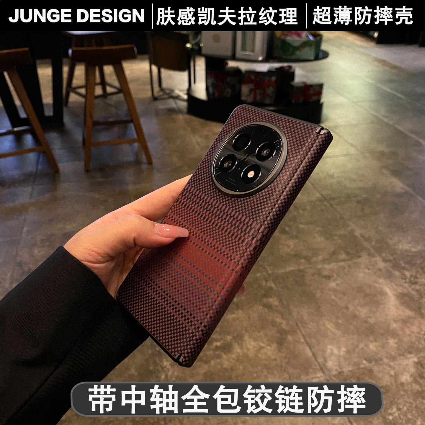 适用oppofindn5手机壳新款全包带中轴防摔凯夫拉纹理硬壳FindN5内置磁吸日落月升编织壳OPPO折叠屏商务保护套