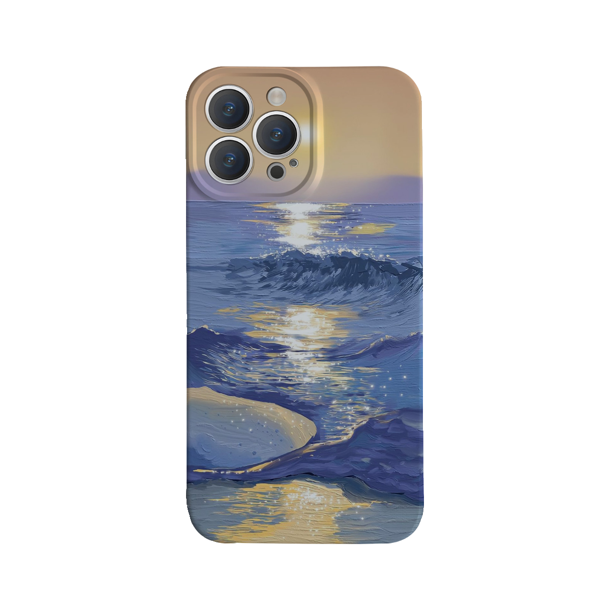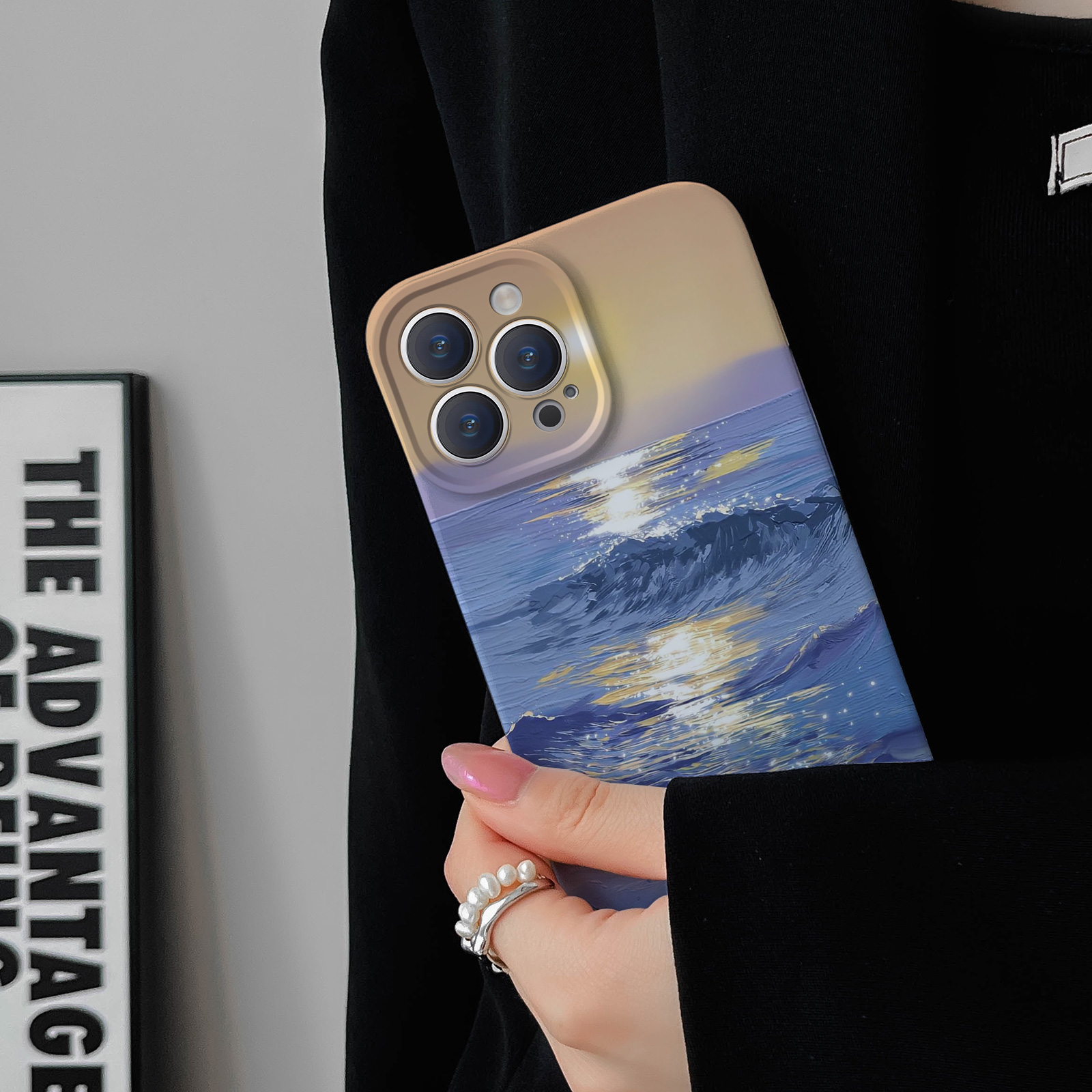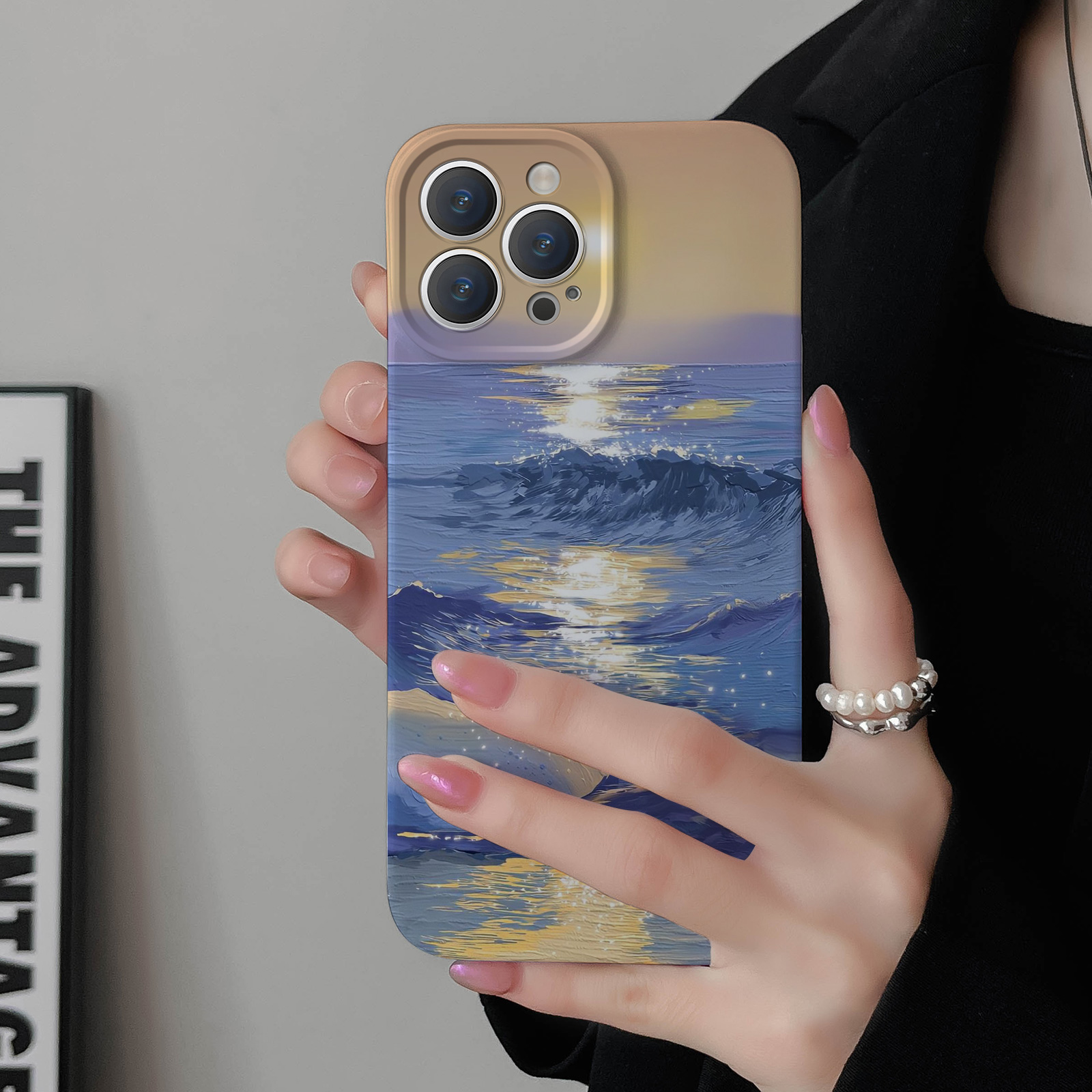 适用华为oppo苹果iqoo荣耀iphone17 16promax/15pro/14/13/12/mate70 60新款情侣手机壳plus油画海浪夕阳风景