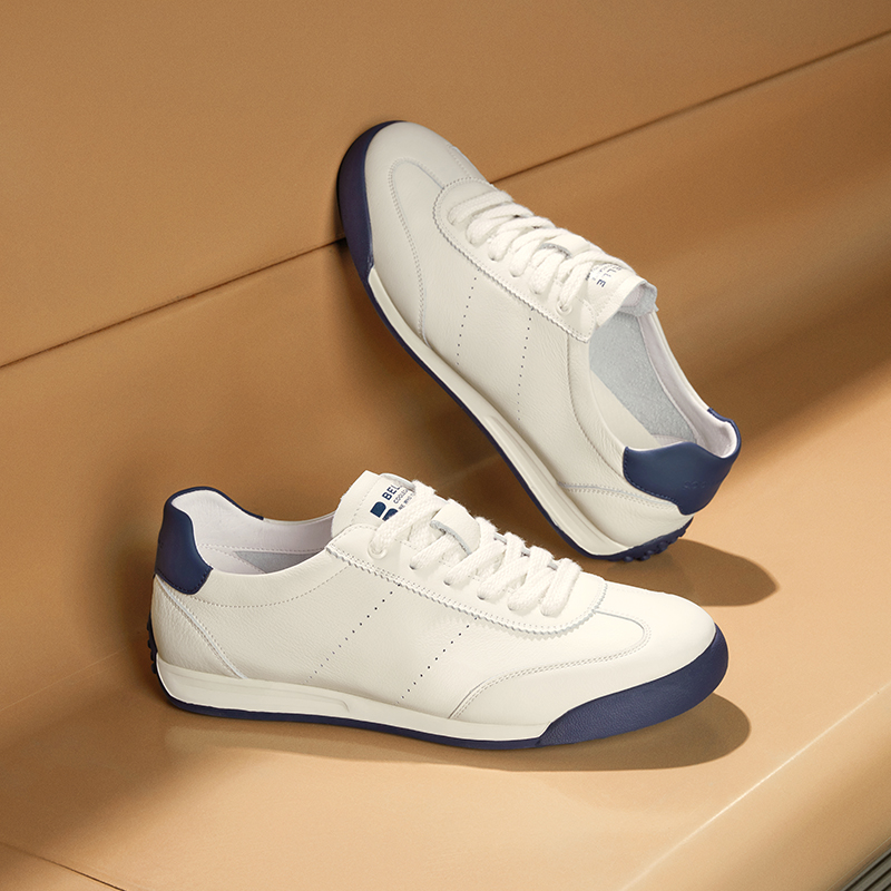 【双11预售】百丽男士休闲真皮商务小白鞋厚底增高板鞋加绒A0615