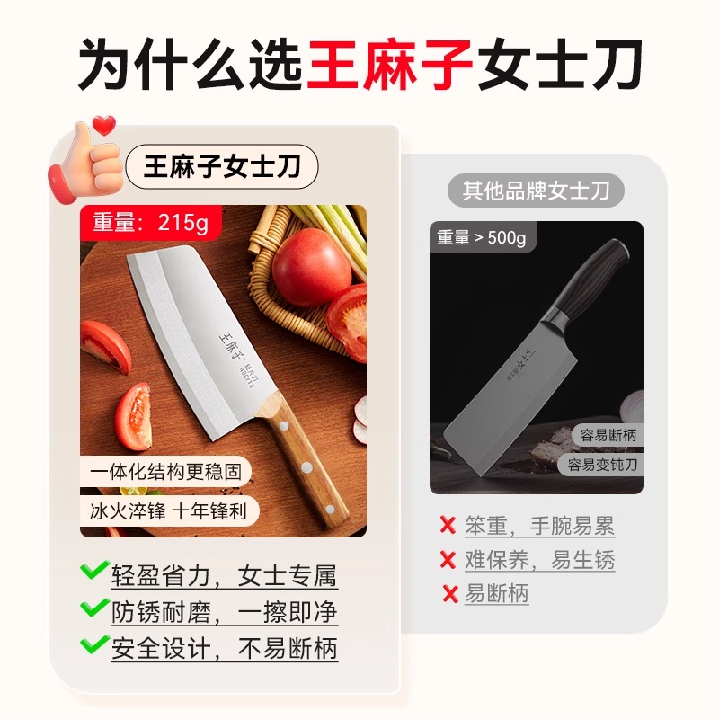 王麻子菜刀女士专用锋利切片刀不锈钢家用切肉刀切菜刀官方旗舰店