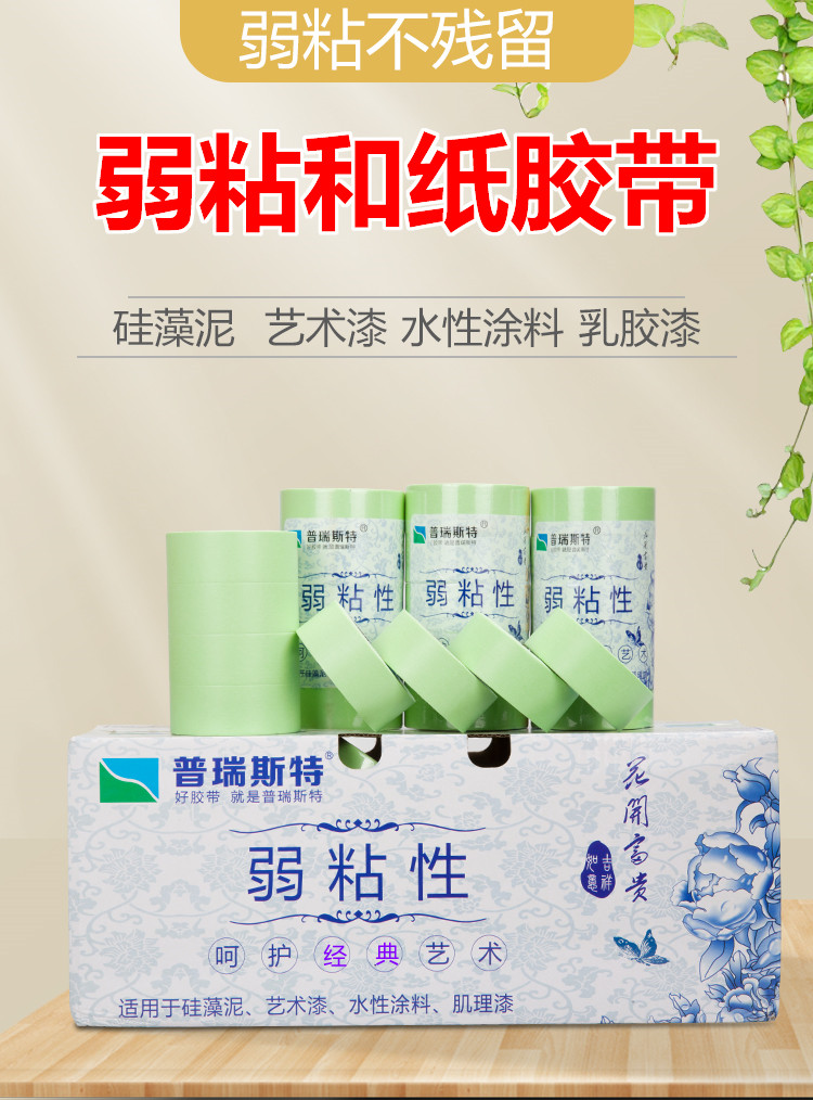 弱粘性美纹和纸胶带艺术漆硅藻泥低粘不伤墙分色喷漆遮蔽50米包邮