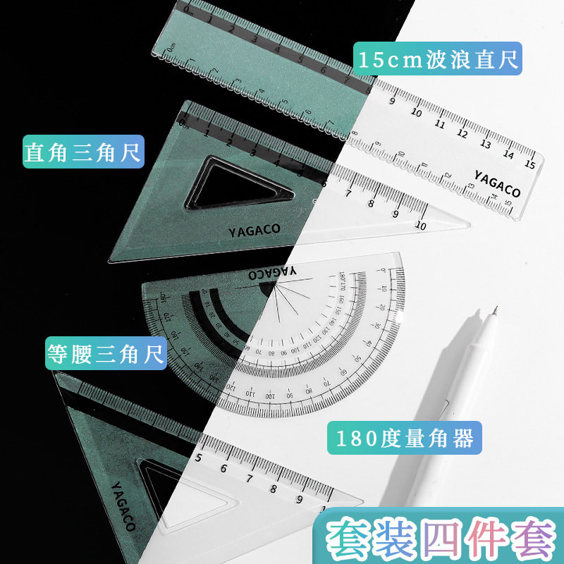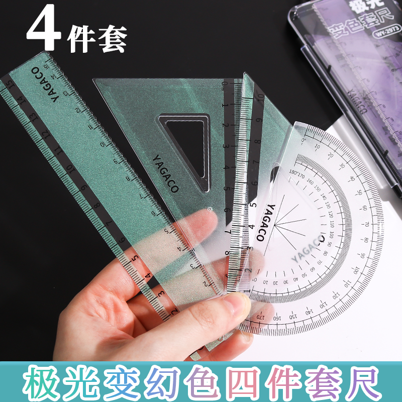 会变色的尺黑科技极光套尺四件套学生专用直尺多功能三角尺量角器