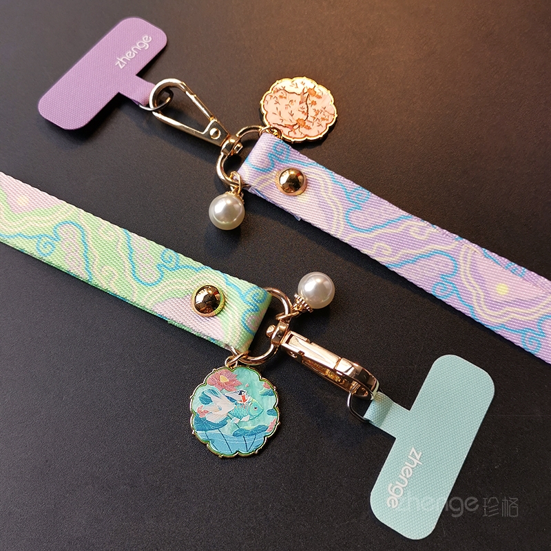 虹客手机挂绳挂脖国风富贵祥云纹编织带子宽版不勒脖长款户外旅游行防丢摔电话套壳挂证件吊绳好看时尚女新品