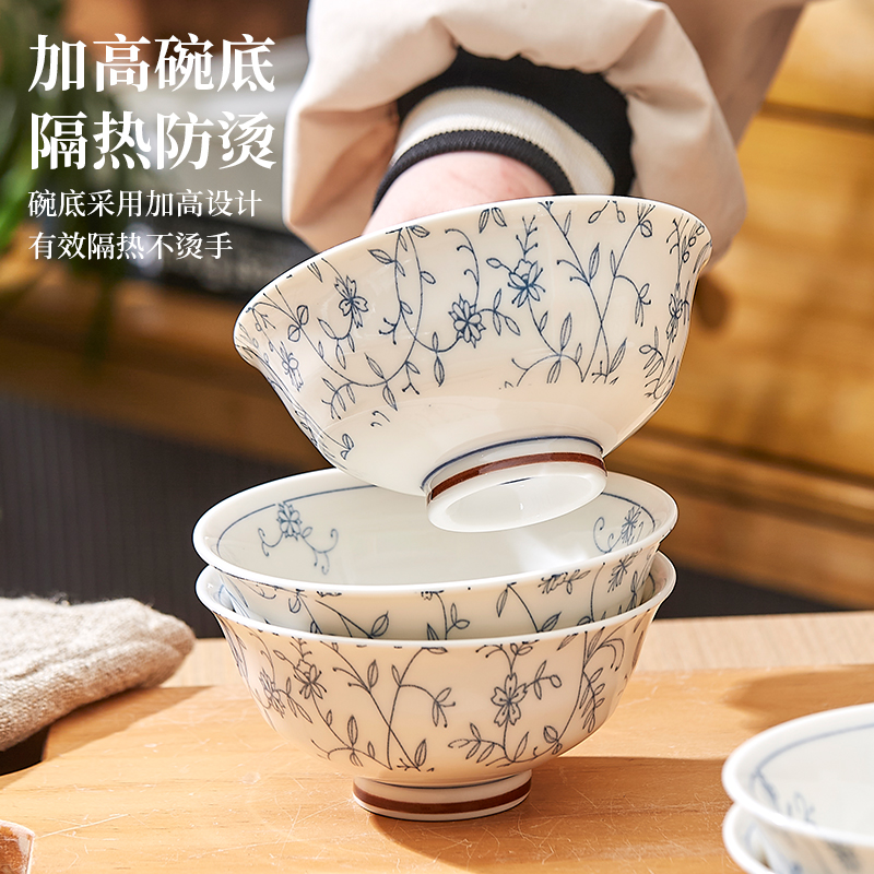 景德镇家用饭碗6寸面碗大汤碗日式线唐草釉下彩餐具陶瓷碗盘套装