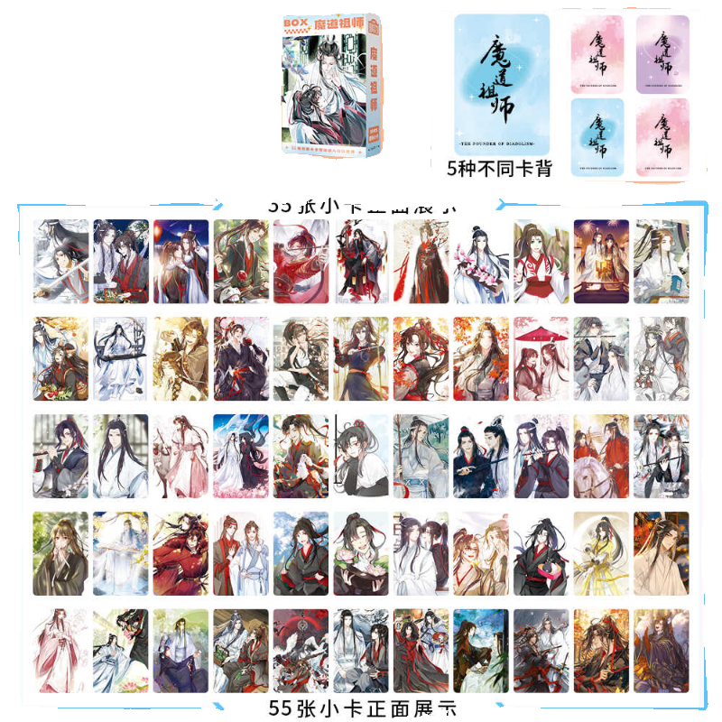 魔道祖师镭射小卡55张双面高清不重复魏无羡蓝忘机同款高清LOMO卡