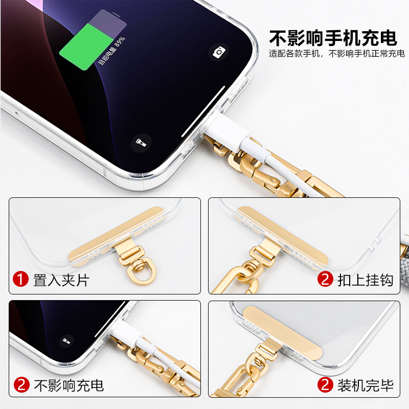 【360度旋转】手机挂绳夹片超薄不锈钢高端金属垫片结实卡贴手机壳挂链连接片手机链夹片式垫片固定贴片新款