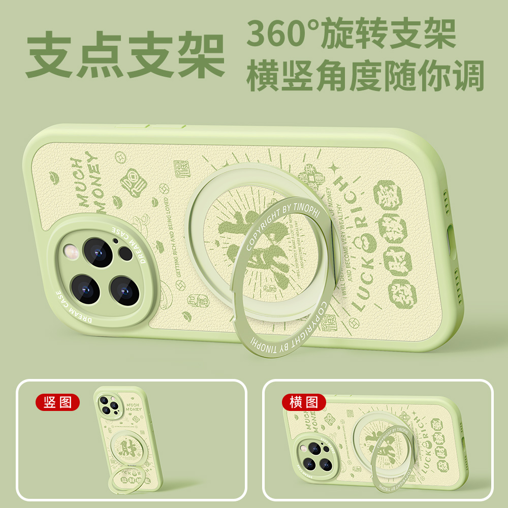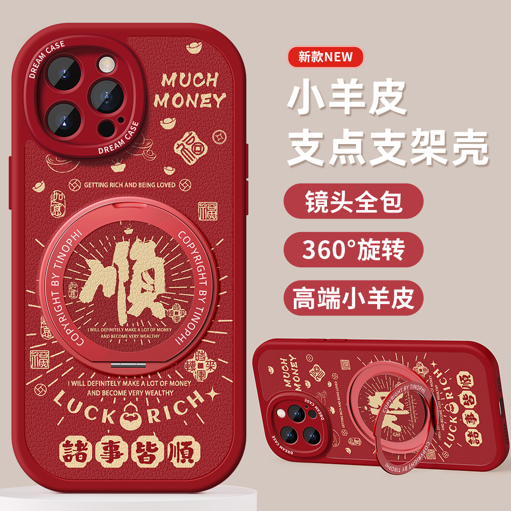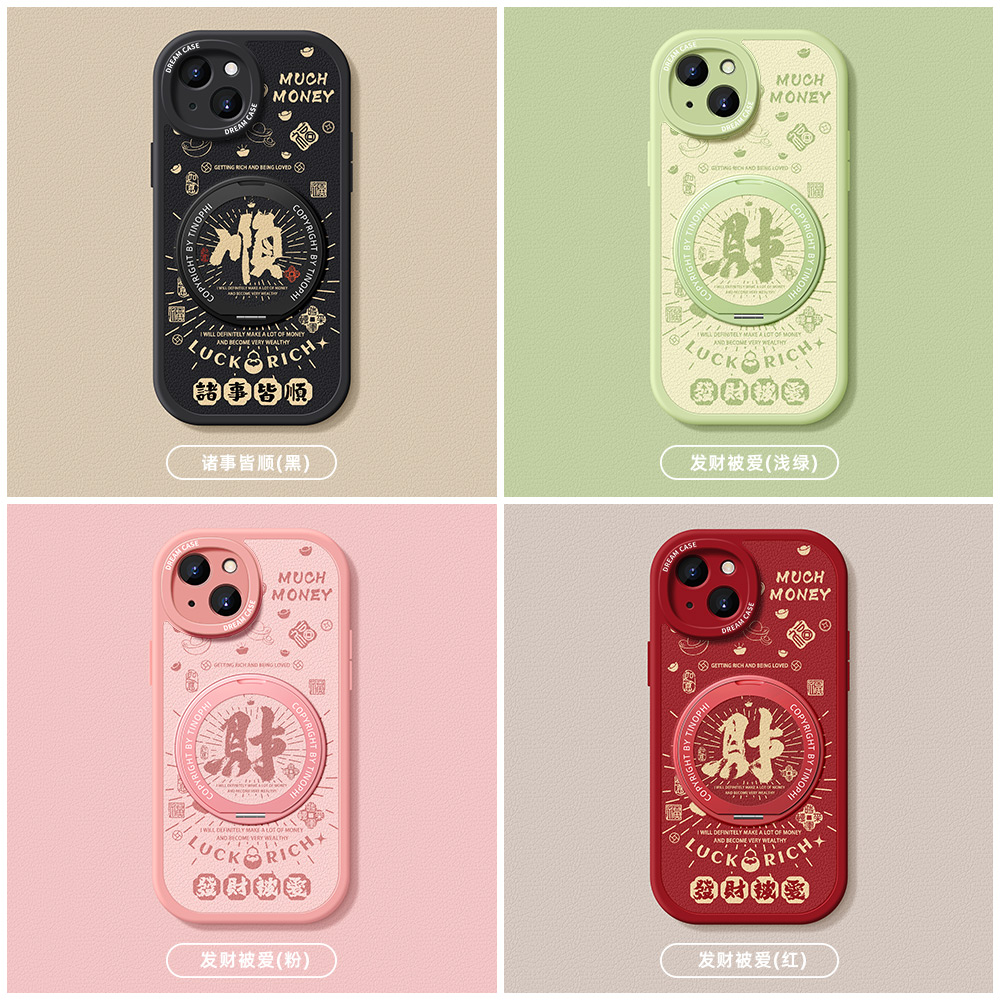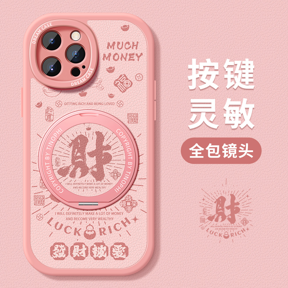 适用于苹果16promax手机壳新款iphone17带支架15/13/12/11防摔8plus全包7p硅胶14保护套磨砂女款文字发财被爱