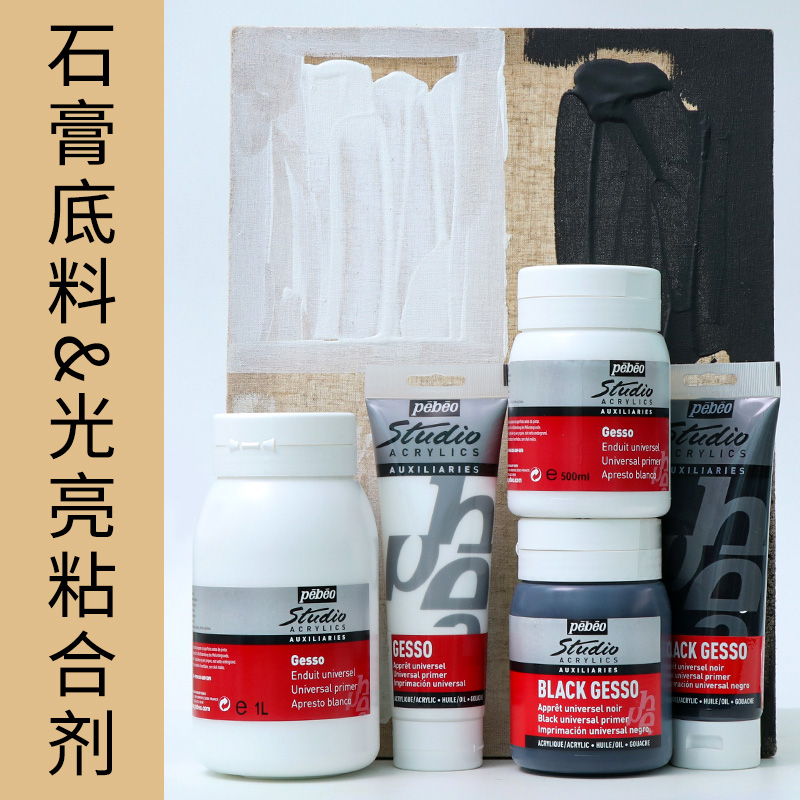 法国贝碧欧石膏底料gesso黑白色油画媒介树脂幻彩粘合剂透明白乳胶丙烯画布亚光涂层绘画材料打底用综合材料