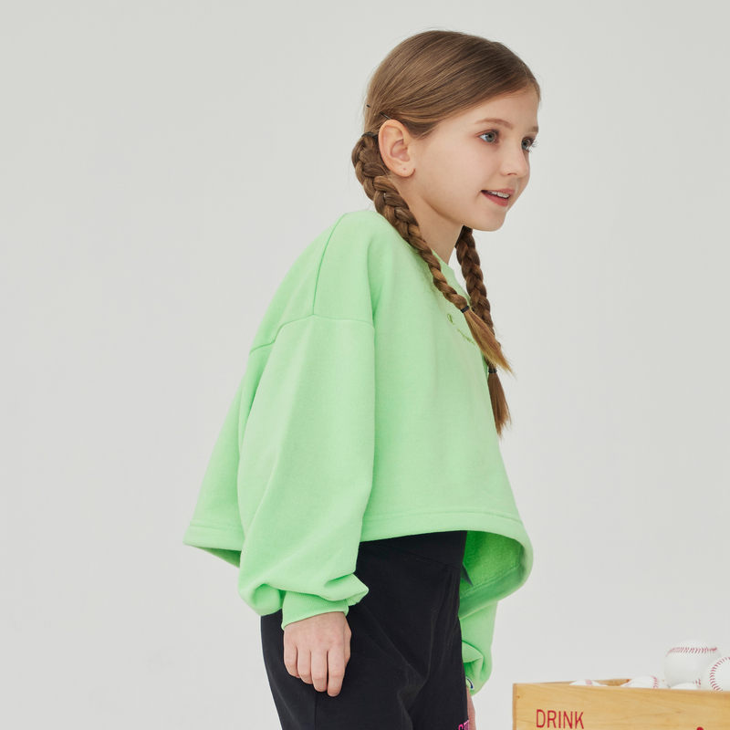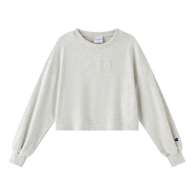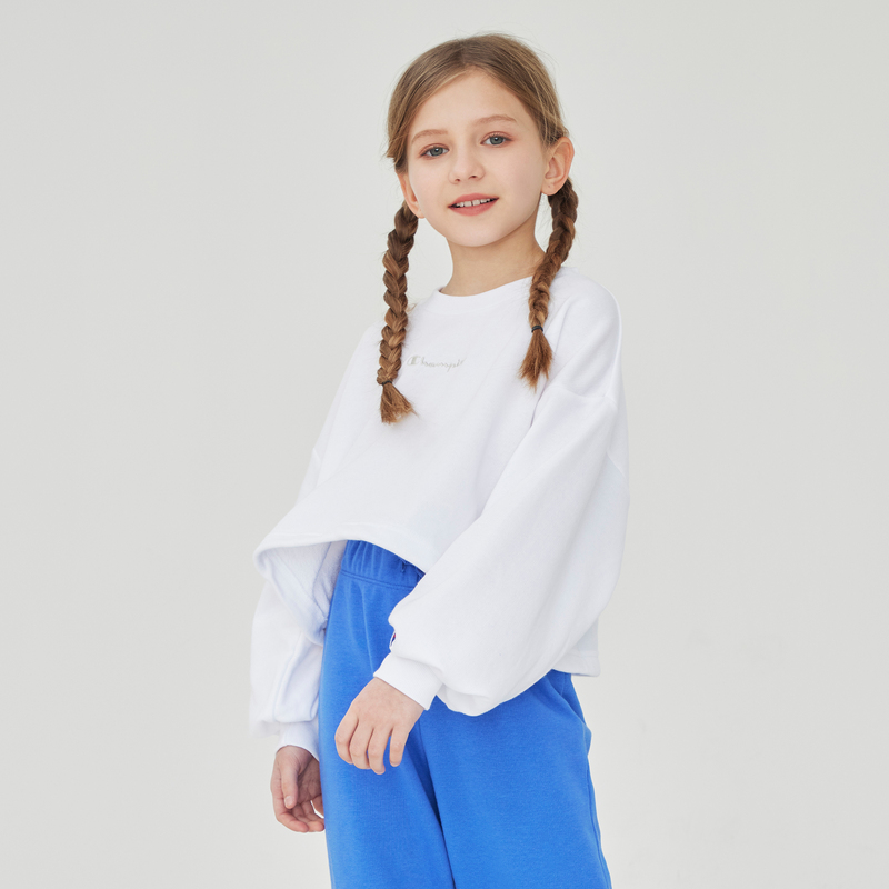 champion冠军儿童装25秋季新款女大小童净色休闲高腰圆领卫衣外套